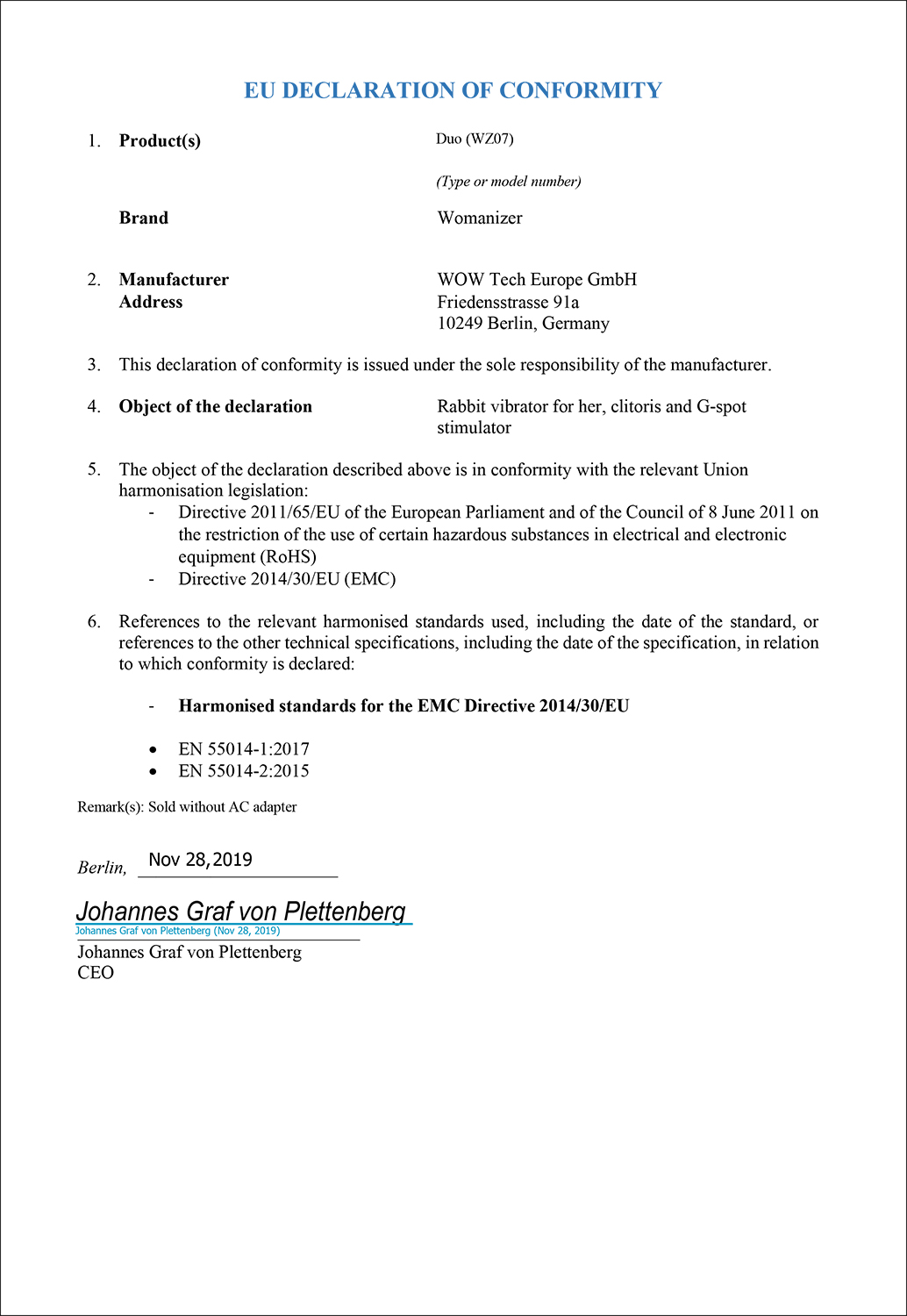Сертификаты продукции Набор насадок на Womanizer Inside Out и Duo, размер М (37649)