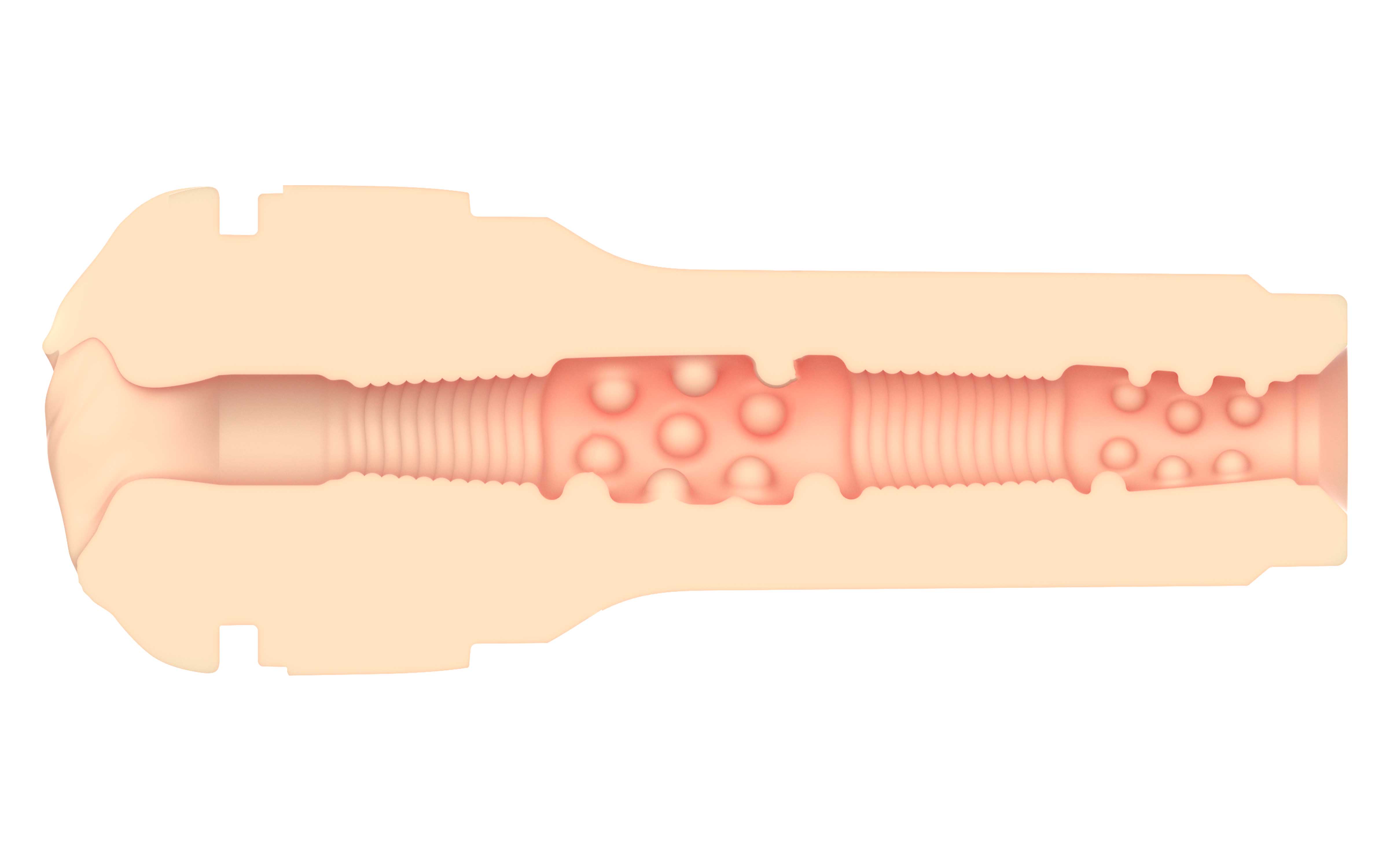 При поступовому зануренні пеніса в мастурбатор ви зможете відчути, як змінюється рельєф внутрішніх стінок, розширюється і звужується діаметр вагінального отвору, завдяки чому буде відбуватися ефективна, активна стимуляція нервових закінчень ерегованого члена. Дрібна ребристість присутня у вужчих місцях, у той час як у широких передбачені округлі опуклості. Залежно від нахилу та швидкості рухів ви зможете досягти яскравих, багатогранних оргазмів!